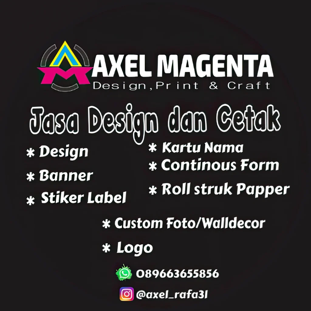 Axel Magneta Axel Magenta adalah usaha dibidang percetakan dan kerajinan yg berhubungan dengan cetak mencetak, sementara ini kami blm mempunyai