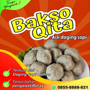 Baso Qita dibuat dengan daging sapi asli berkualitas tinggi, Baso Qita menawarkan varian bakso yang tiada duanya, siap memanjakan lidah Anda dengan cita rasa yang otentik dan menggugah selera.